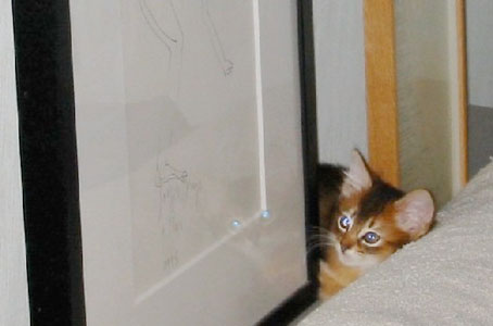 気に入りの紙袋の中、ソファの下、そして飾ってあるオブジェの陰です。