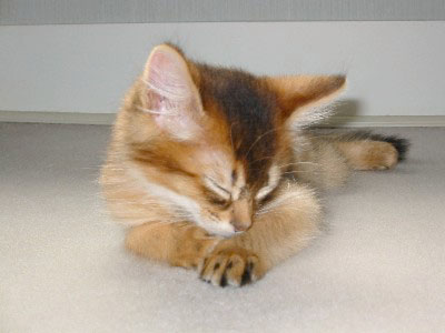 お昼前頃、マフィンは、ちょんちょんと、私を前足でつついて、誘ってきます。